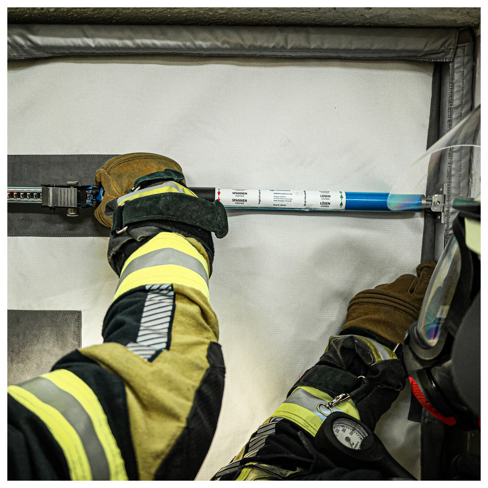 Dank der durchdachten Konstruktion ist der Rauchschutzvorhang auch für den intensiven Feuerwehreinsatz geeignet.