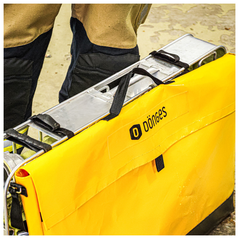 Nach dem Einsatz lässt sich der Rauchschutzvorhang platzsparend in der mitgelieferten Transporttasche verstauen. Die Tasche ist mit praktischen Befestigungsschlaufen ausgestattet, sodass der Vorhang sicher am Schlauchtragekorb transportiert werden kann.