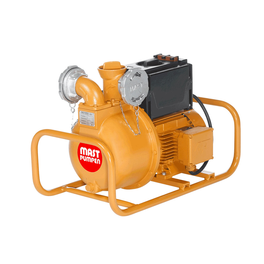 Wenn es am Einsatzort gefährlich und brenzlig werden könnte, dann kommt nur eine in Frage – die TUP 2-1. Die MAST Umfüllpumpe der "TUP-Reihe" sind gemäß Eex II 2G cIIB T3 explosionsgeschützte, selbstansaugende Pumpen. Als Weiterentwicklung der MAST Baupumpen trotzt die TUP 2-1 den härtesten Bedingungen - sowohl die Pumpe als auch der starke 400 V Drehstrom-Elektromotor haben eine hohe Zuverlässigkeit und Robustheit bereits zig-fach unter Beweis gestellt. Der schmutzunempfindlichen Bauart können selbst stark verschmutzte Flüssigkeiten nichts anhaben. Ein stabiler Stahlrahmen schützt die Pumpe vor Beschädigung – ist aber auch durch die daran angebrachten Tragegriffe gut und sicher von 2 Personen tragbar. Eine spezielle Gleitringdichtung macht sie zuverlässig trockenlaufsicher.