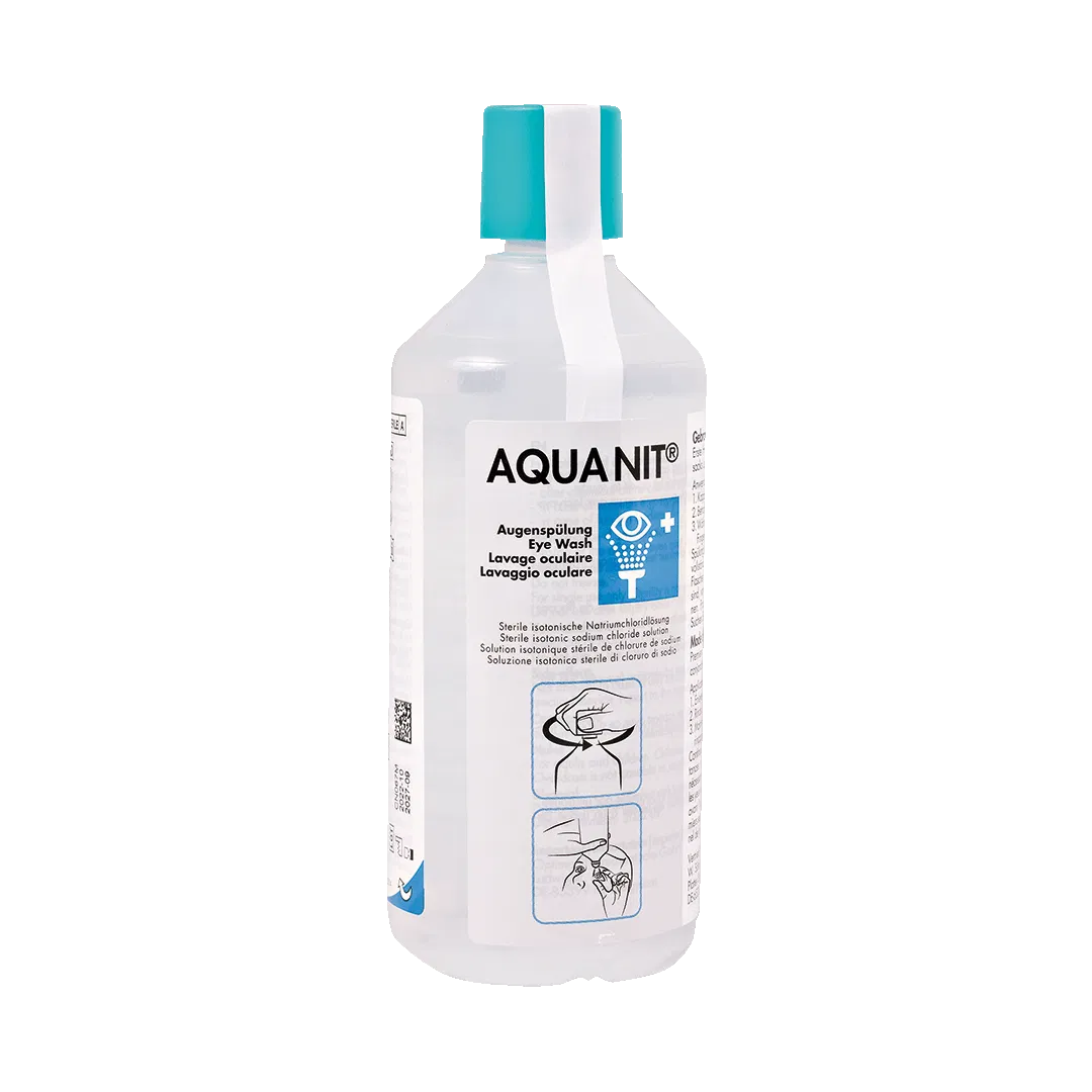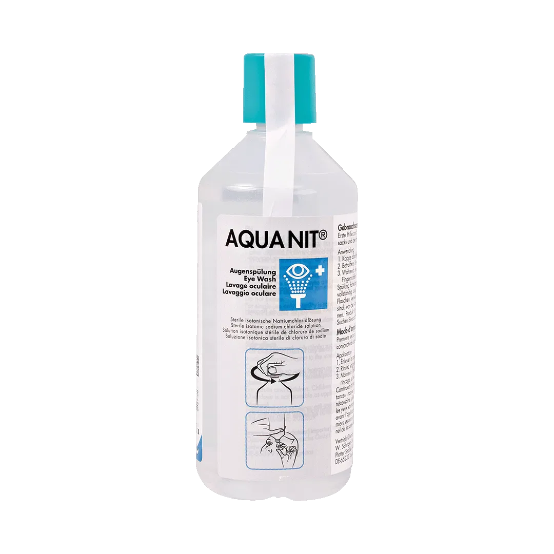 Gebrauchsfertig, 250 ml Sterilwasser für sofortige Augenspülung am Unfallort. Für alle unfallgefährdeten Arbeitsplätze, in der Werkstatt, im Betrieb, auf Baustellen und im Labor, bei allen Schmutz-, Staub- und Über-Kopf-Arbeiten.